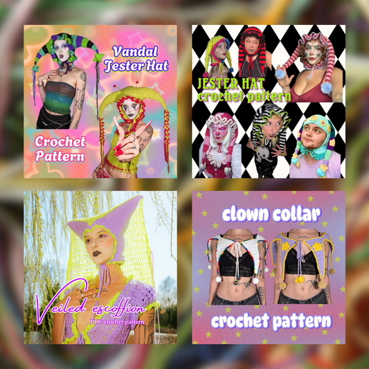 - All my 3D elements (clown horns, devil horns, keychains etc) are 100% filled with yarn/fabric scraps or old pillow filling. I do not buy polyfill.