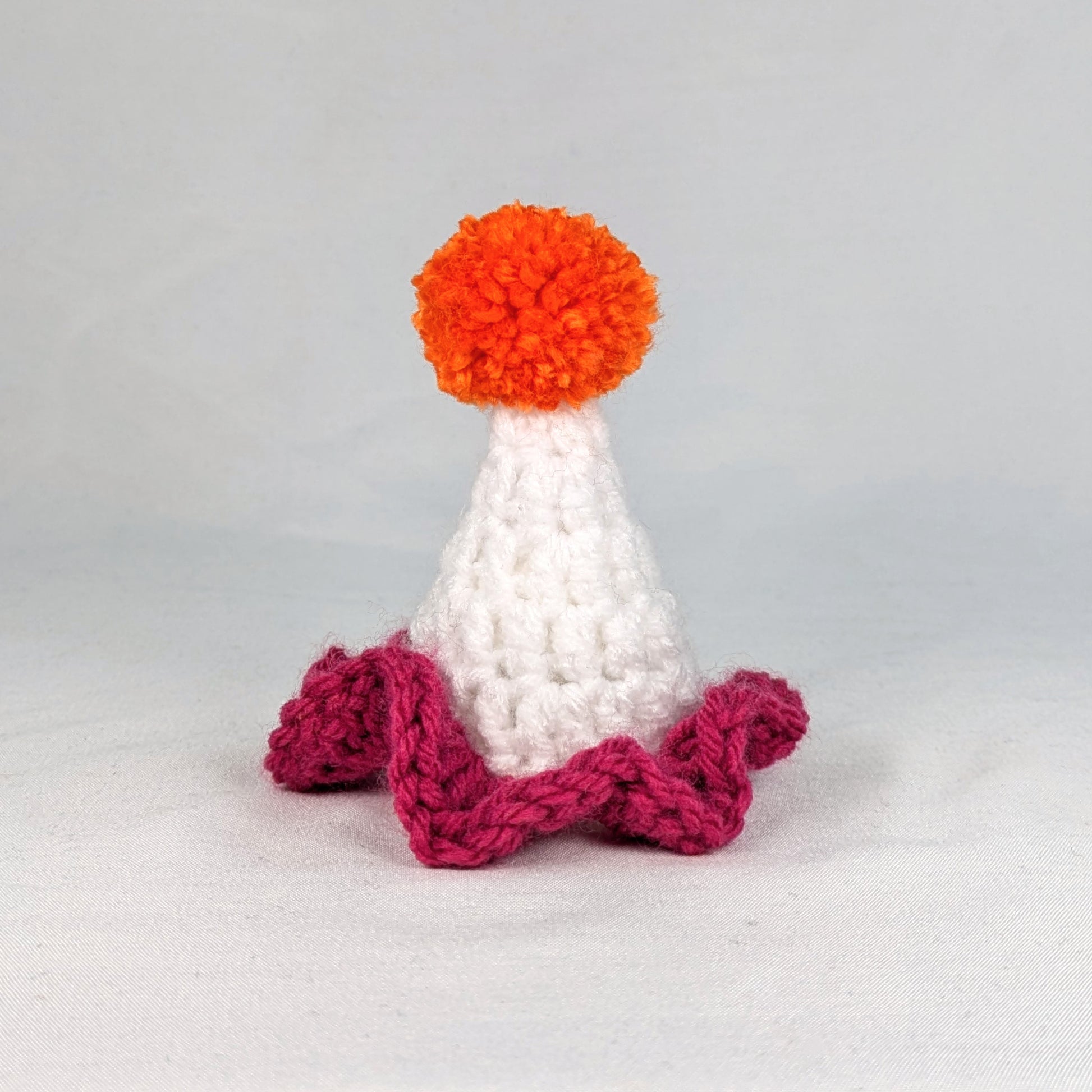 The absolute cutest mini clown hat crochet hairclips in the colors of the pride flags! They are adorned with frills and a pompom, and they each have a metal hair clasp on the bottom 🤡 This is the perfect hair accessory for gay clowns on a budget ! These barettes are all handmade by me :D